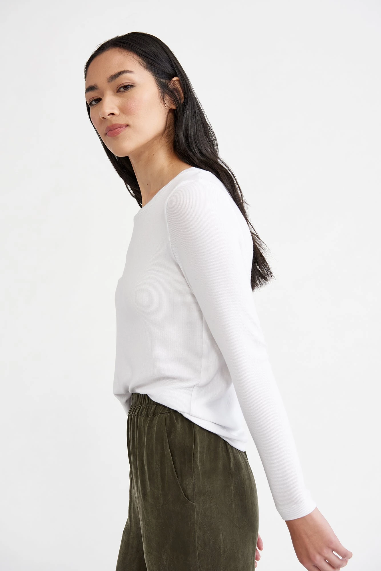 Long sleeve tee with an open neck and clingy, relaxed silhouette. Made in our silky-smooth Dream Rib, perfect for layering or wearing alone.