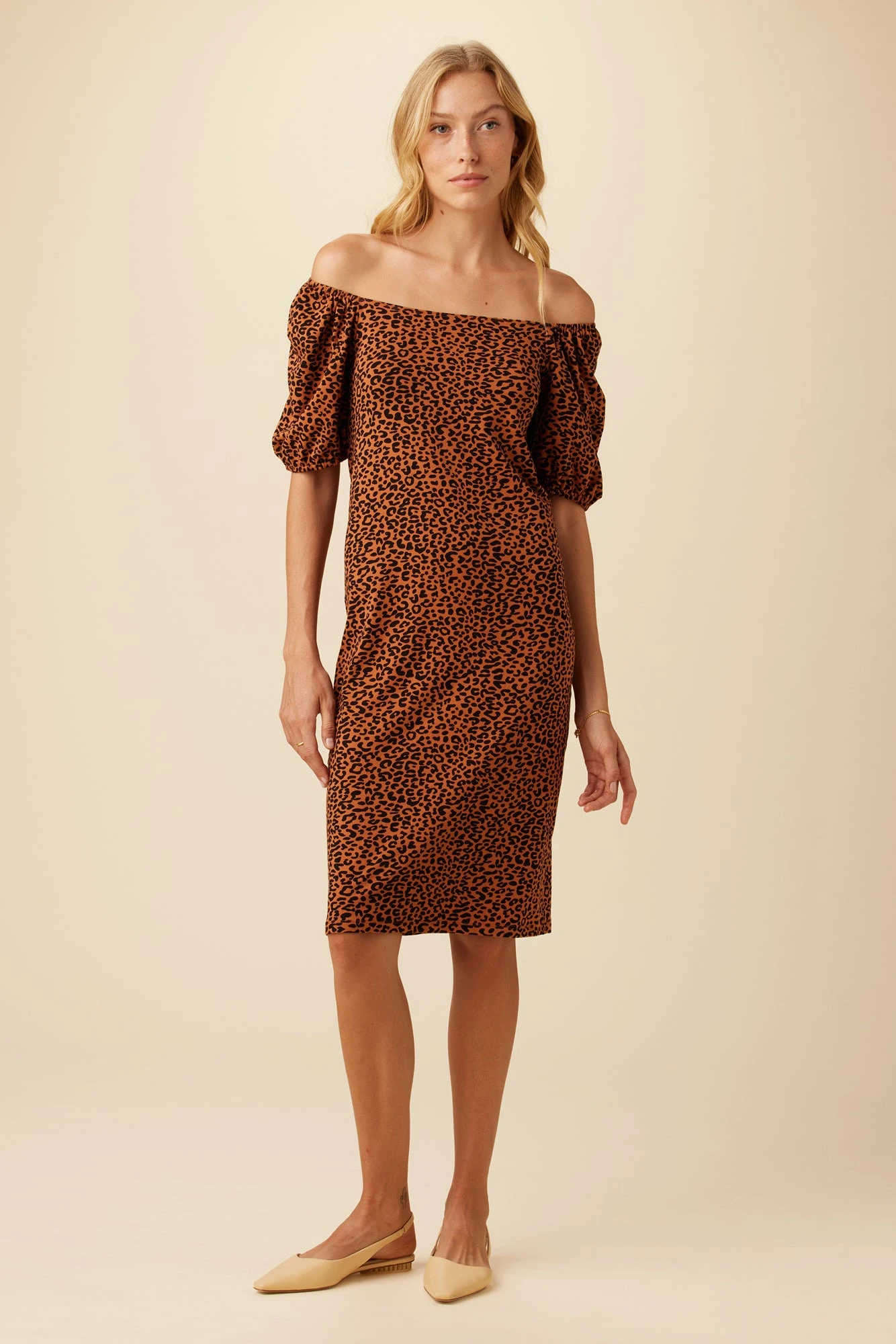 Bonnie Reverie Knit Dress – Almond Leopard Print