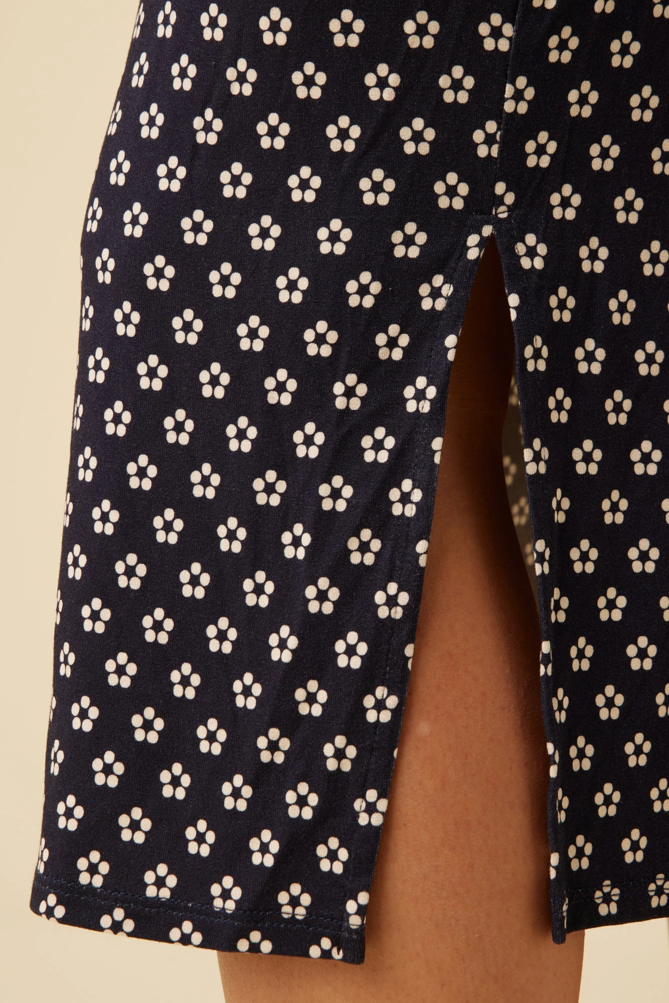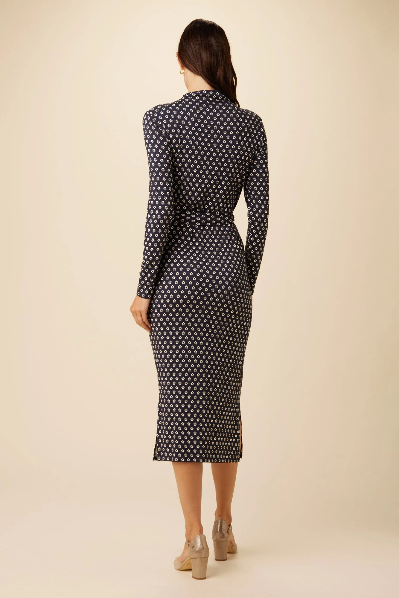 Midi dress featuring a mock neck, long sleeves, and an adjustable waist tie. Made from our Viscose Knit fabric for a soft and comfortable fit.