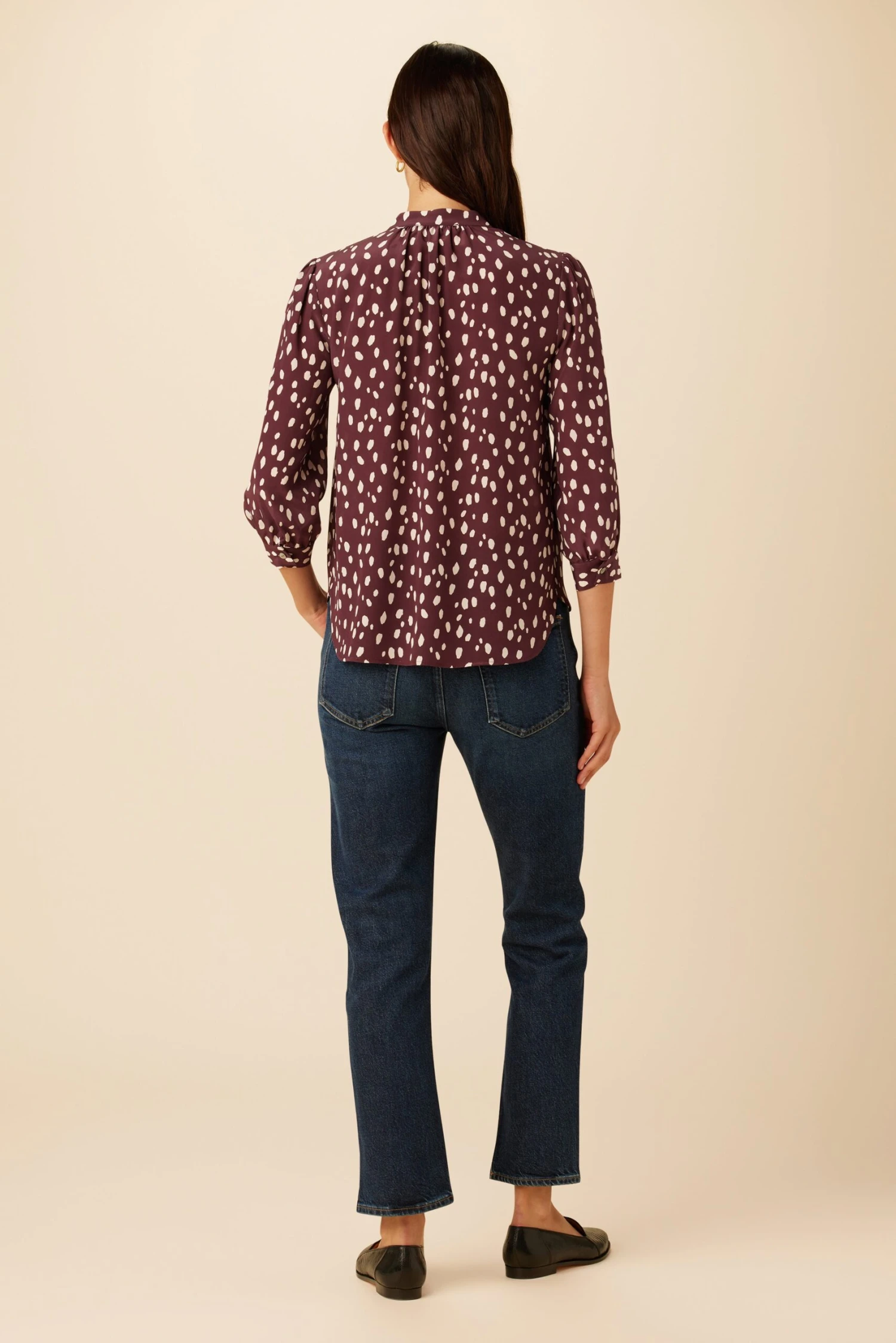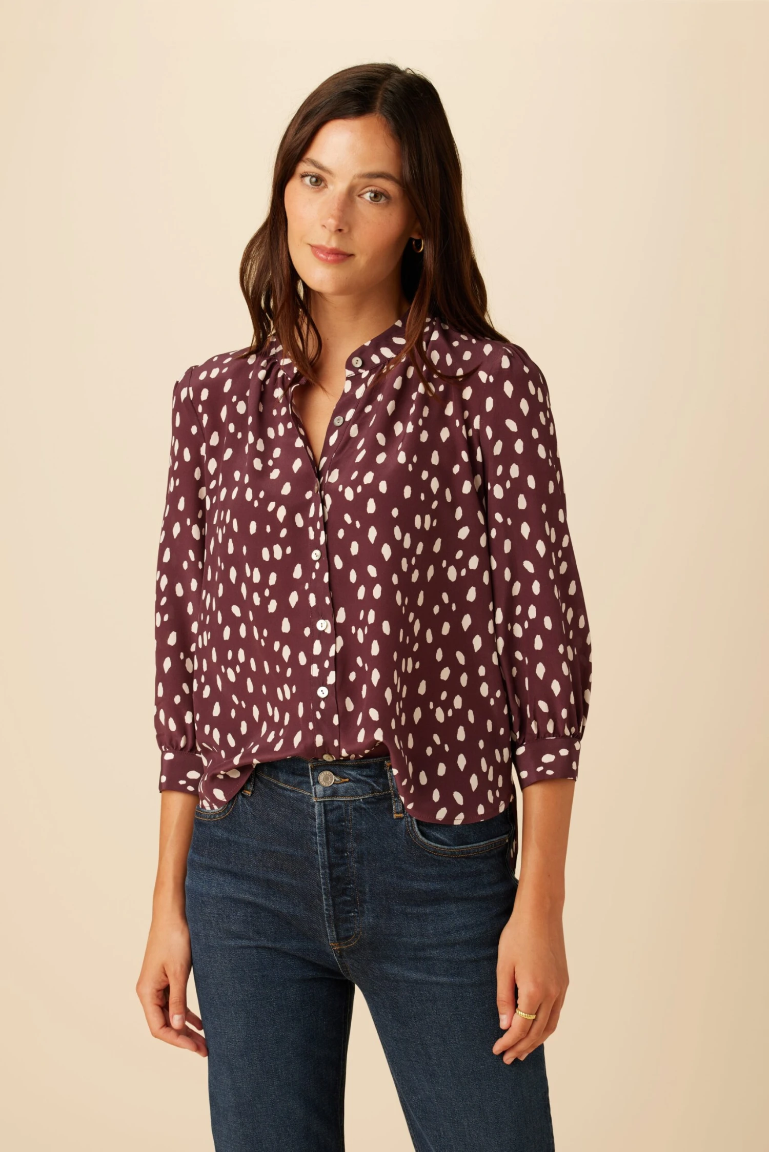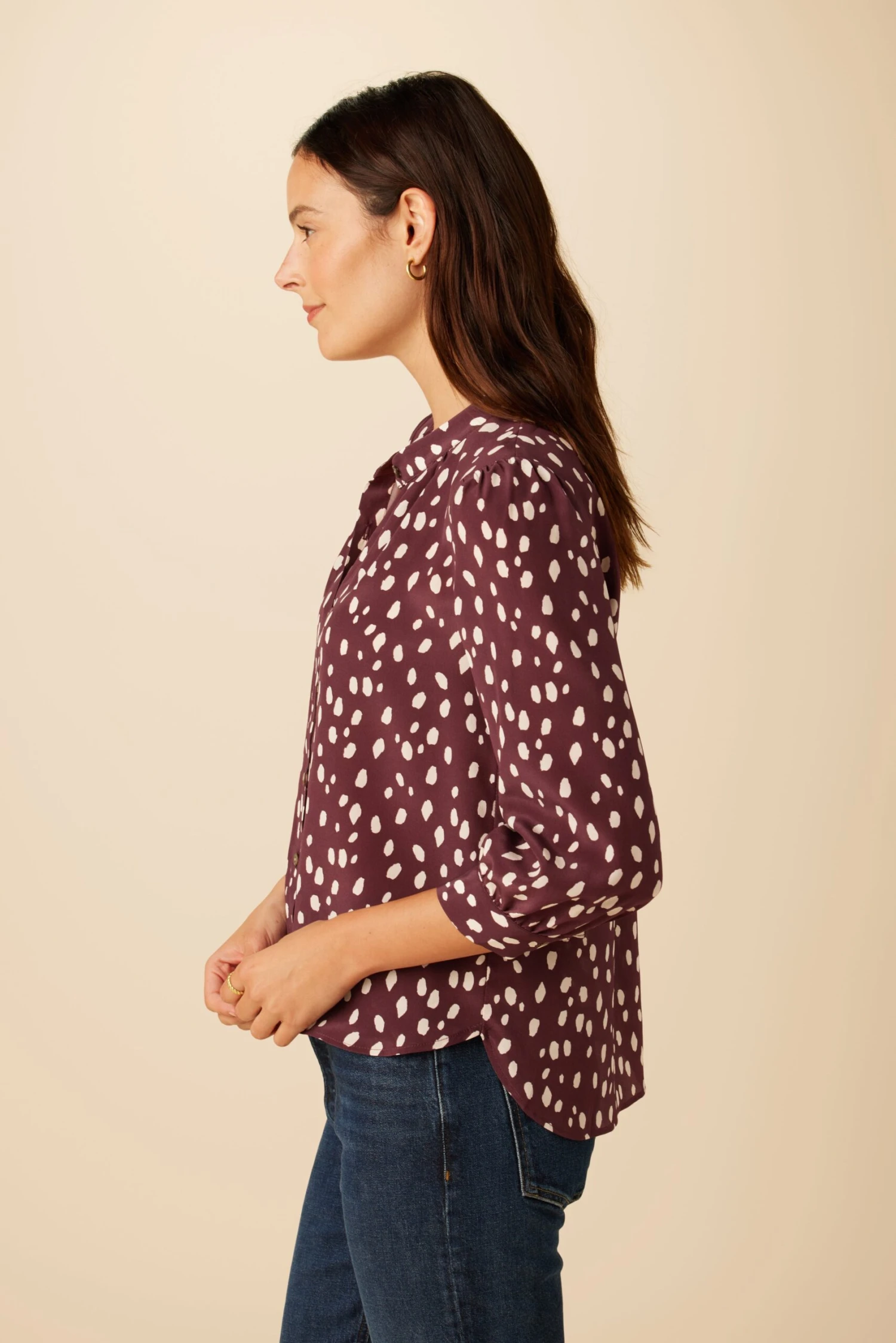 Charlotte 3/4 Sleeve Washable Silk Blouse – Pebble Dot Plum