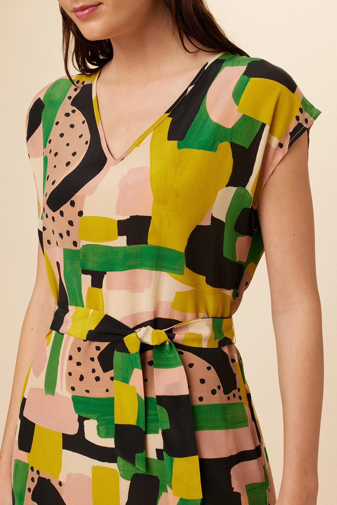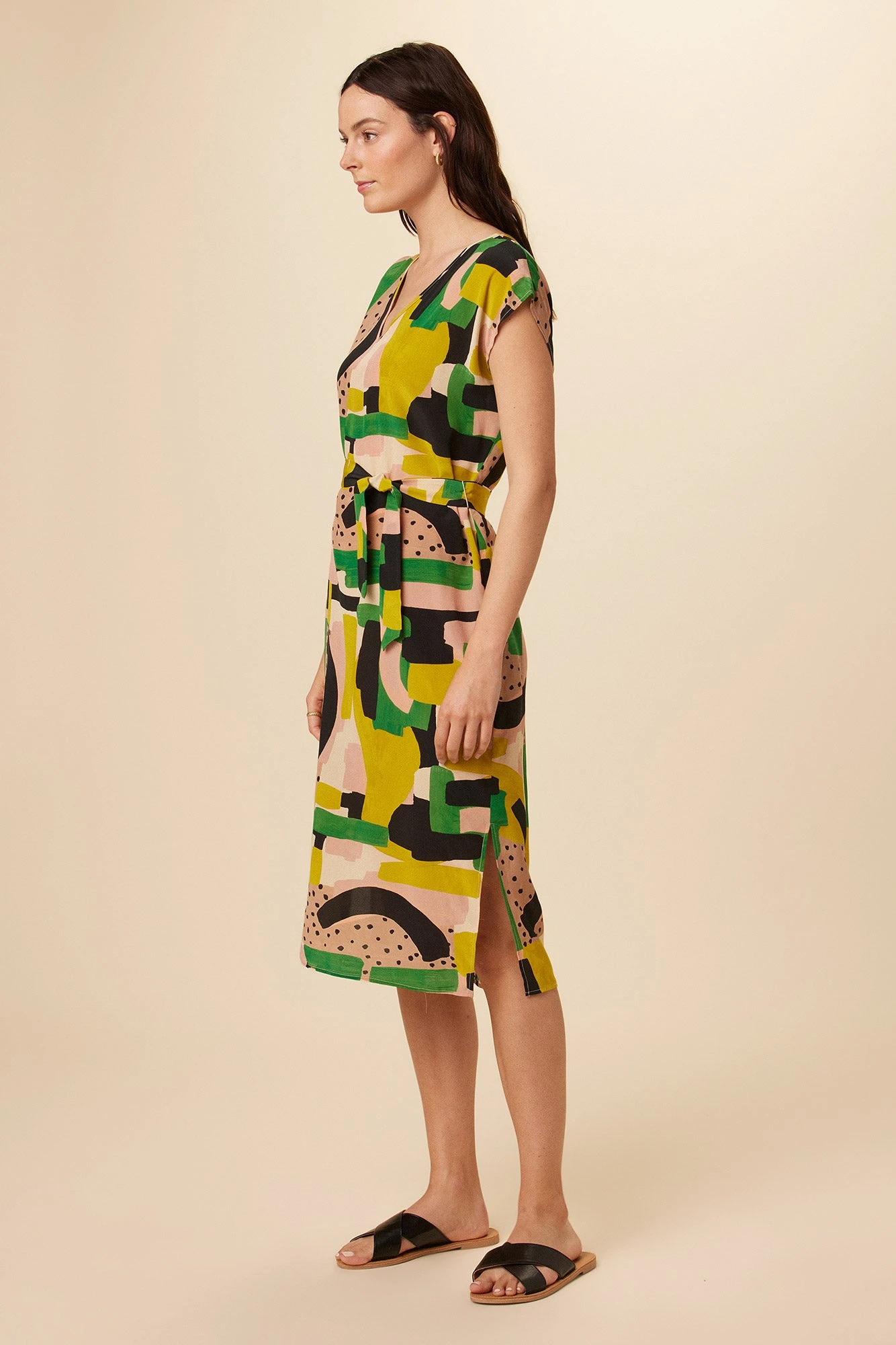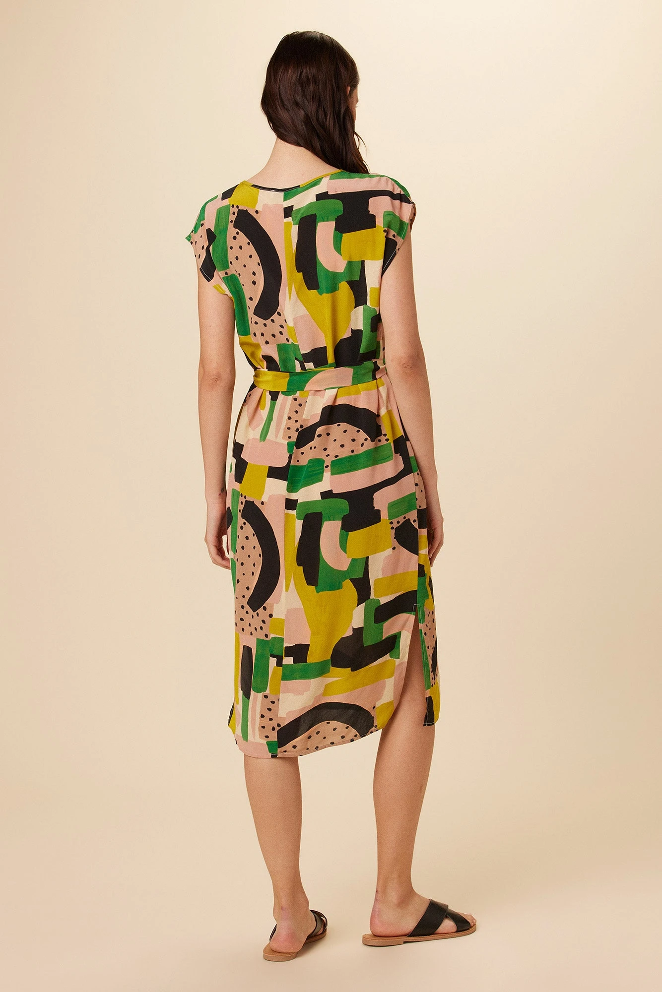 Short sleeve midi dress with side pockets, side slits, and an adjustable tie at the waist. Made from our luxurious Mulberry silk, this piece will have you dreaming of your next tropical getaway.