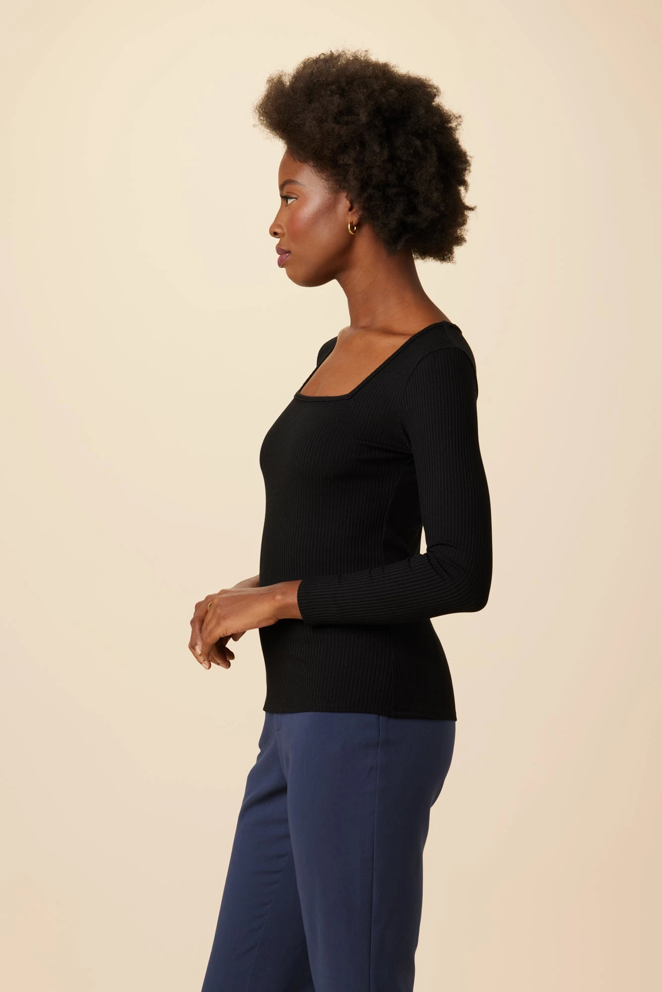 Long sleeve top with a square neckline and fitted silhouette, made from our signature Paris Rib fabric.