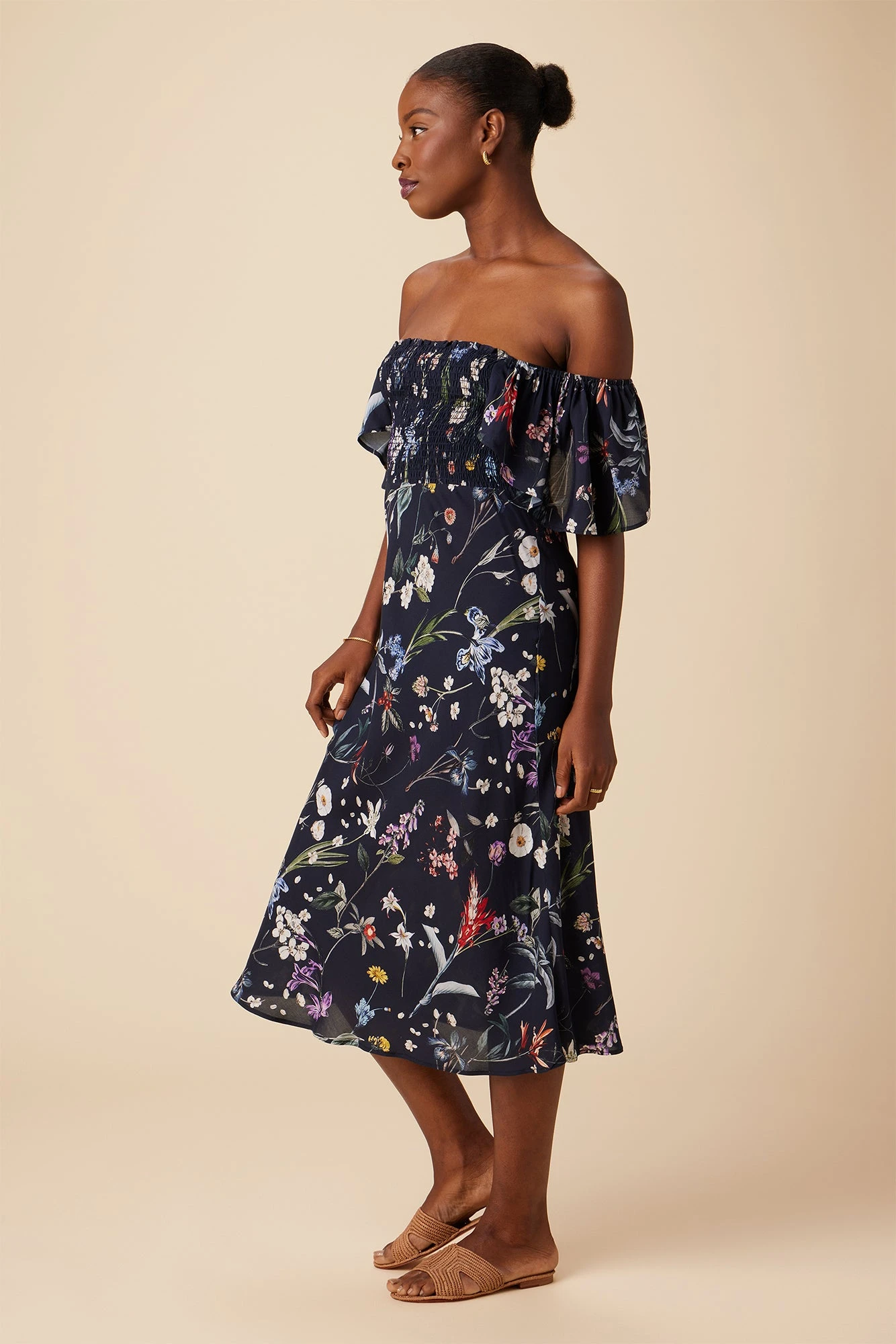 - Midi length, smocked bodice