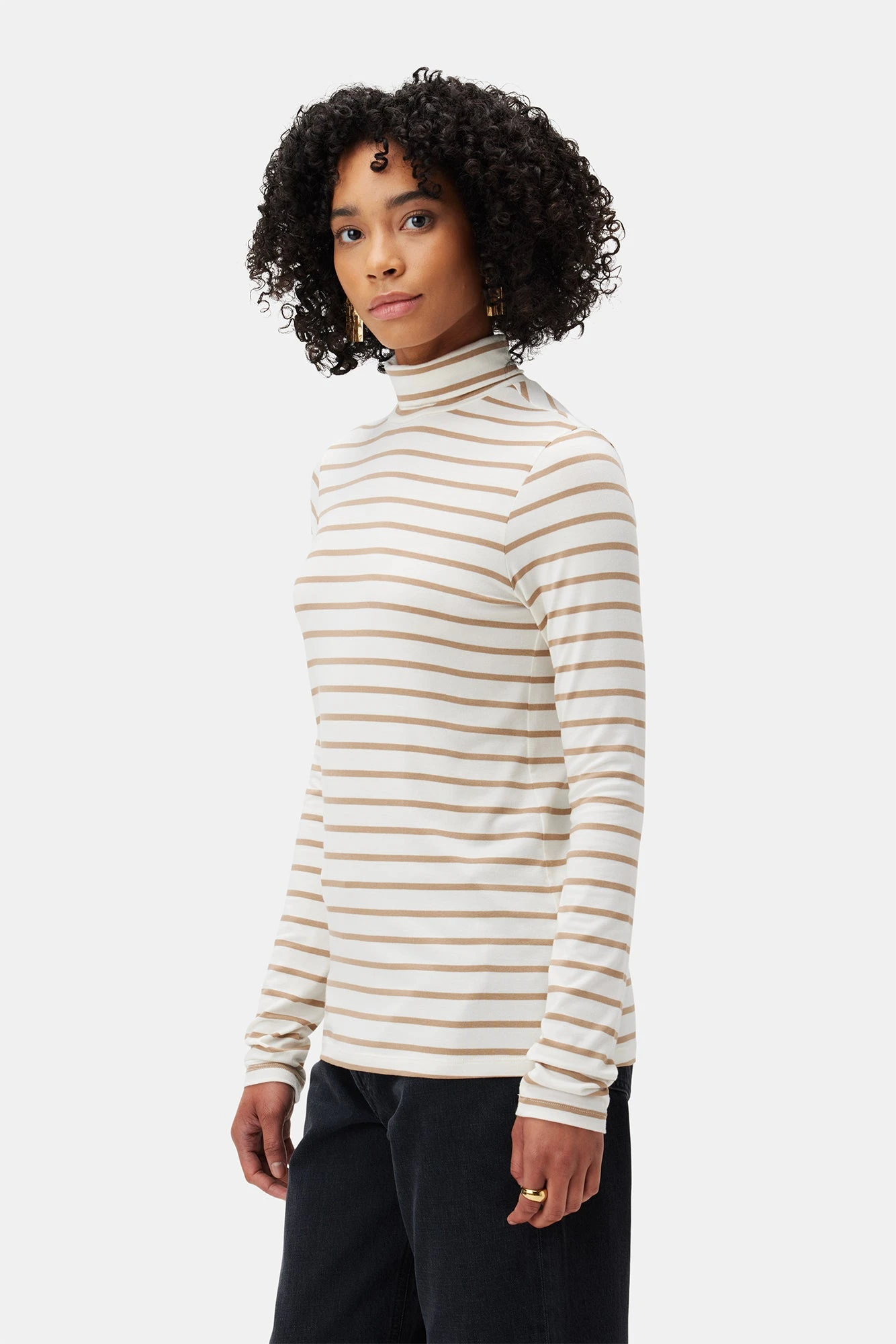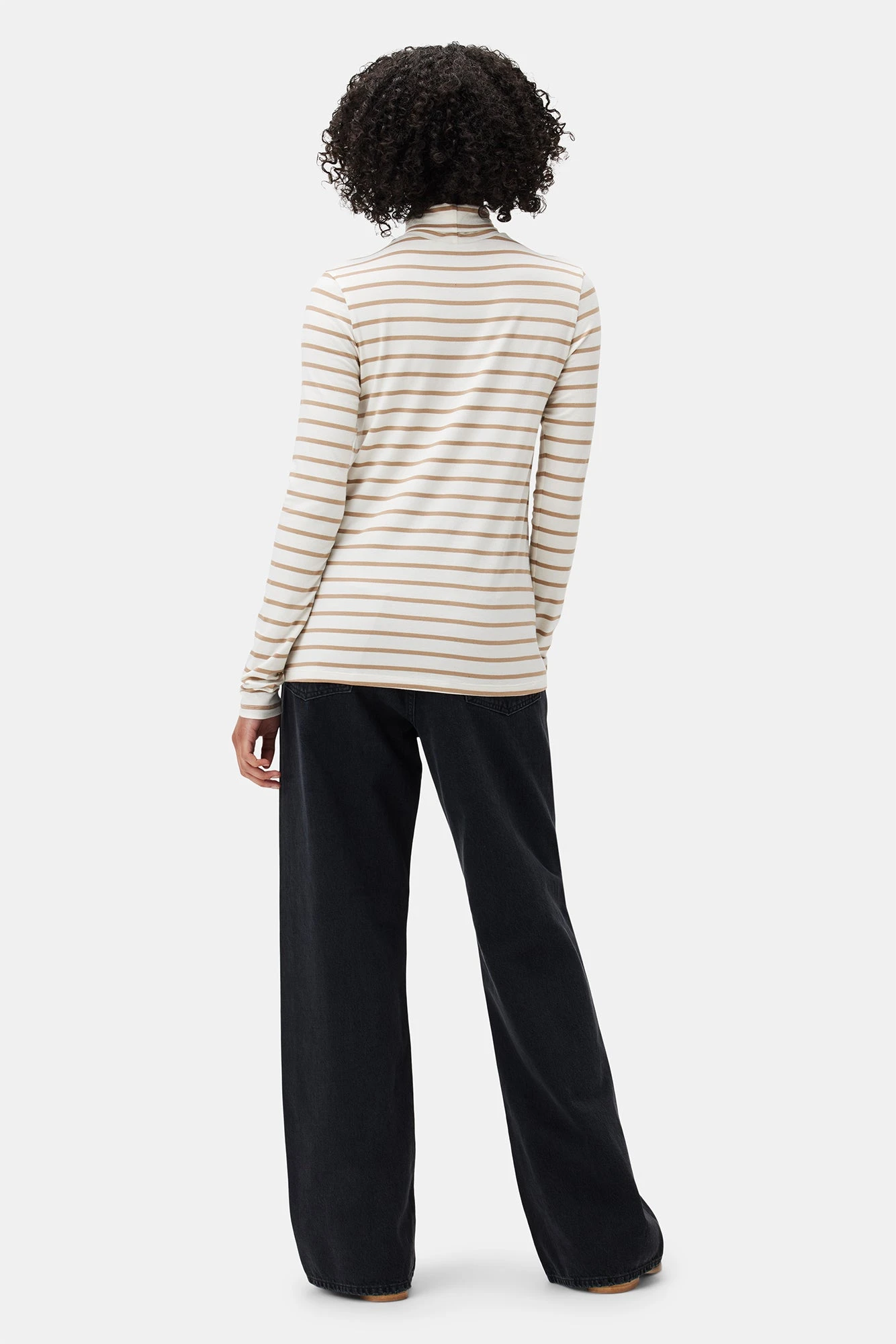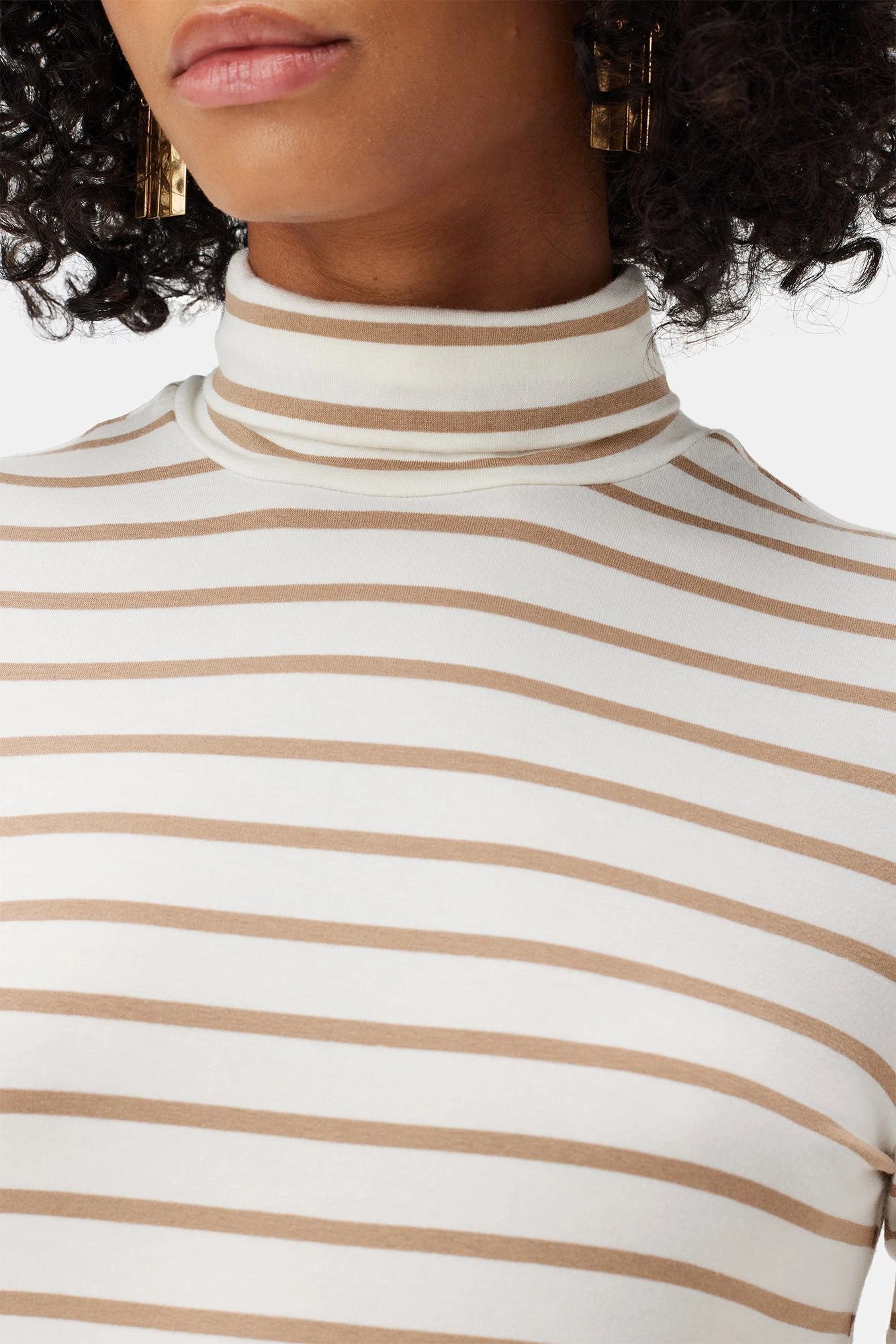 Flannery Dream Knit Turtle Neck – Ivory Camel Stripe