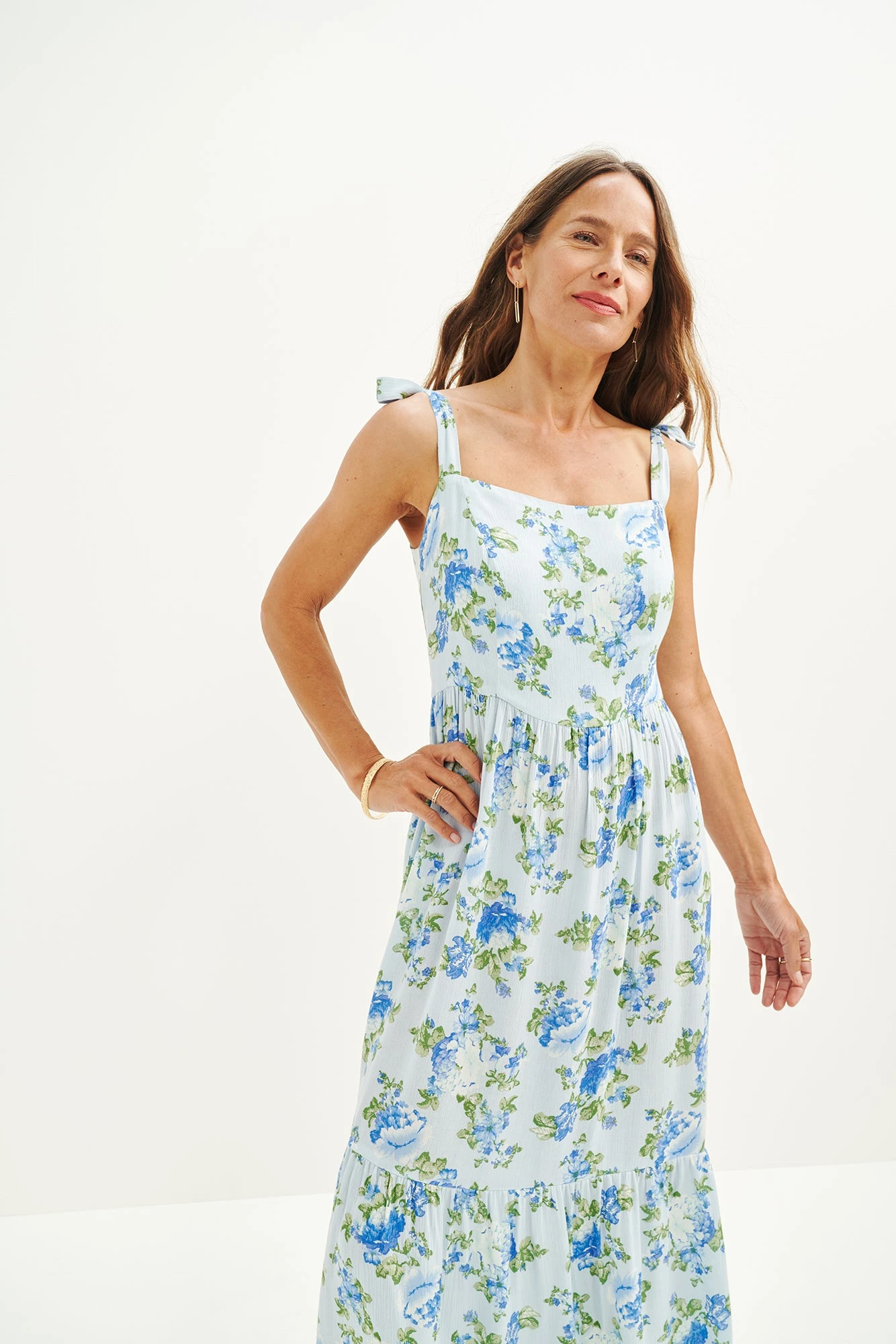 This dreamy ‘wear everywhere’ occasion dress is made from upcycled rayon as part of our commitment to repurpose old materials and reduce waste.