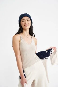 Essential racerback tank with a v-neckline and fitted silhouette. Made from our softest Dream Knit, a lightweight fabric sourced responsibly from beechwood tree fibers.