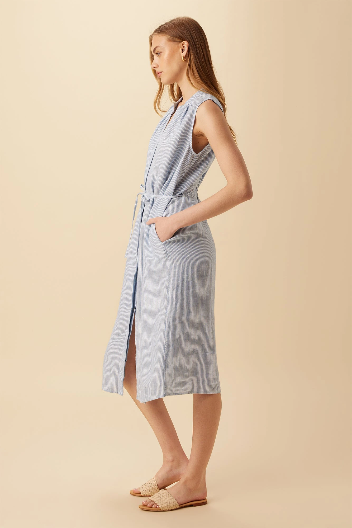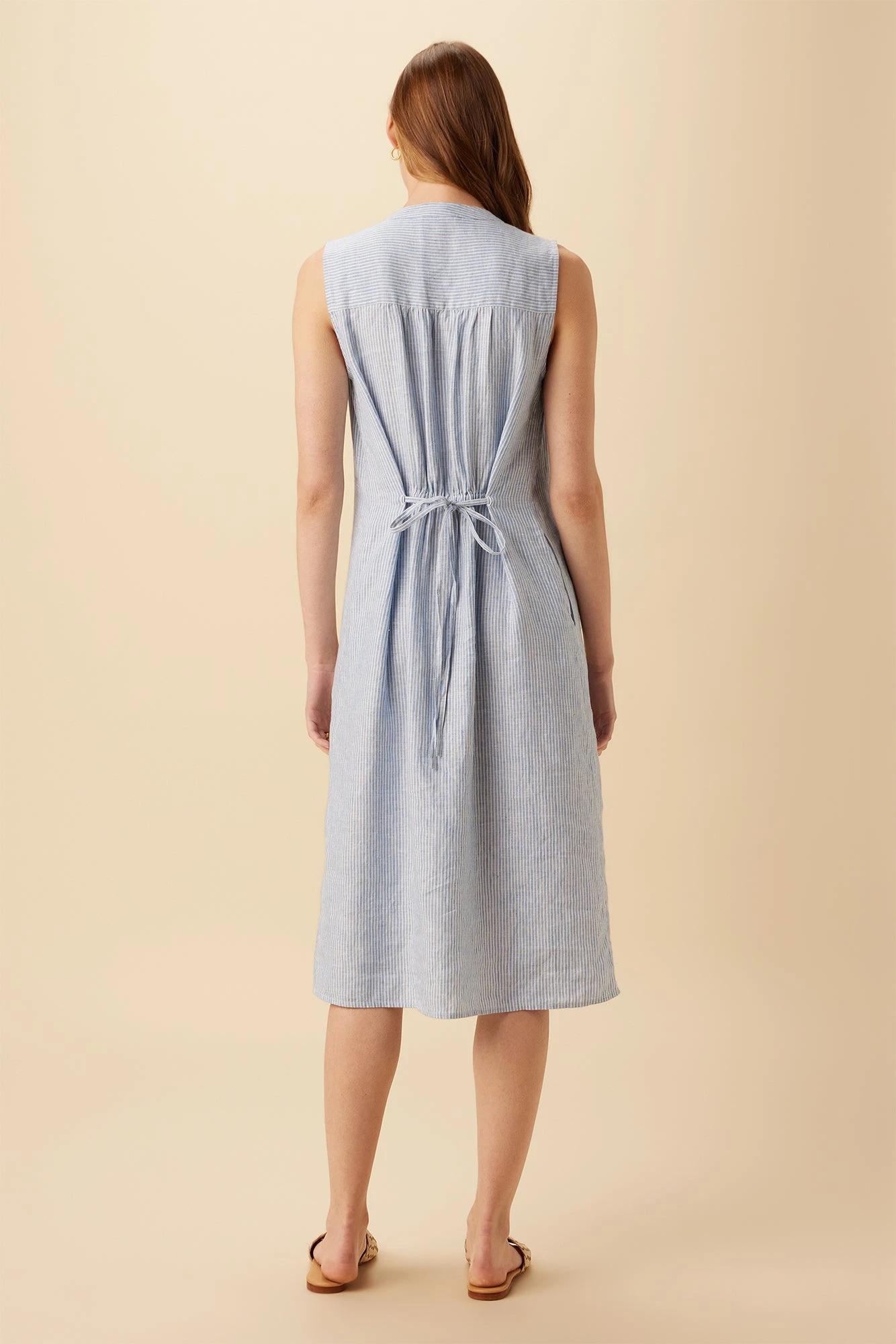 Kylen Linen Midi Dress – Blue Natural Stripe