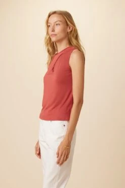 This easy cropped tank is designed to be worn with high-rise denim, the Christy Skirt, or the Salice Mixed Cupro Pant for a more streamlined co-ord look.